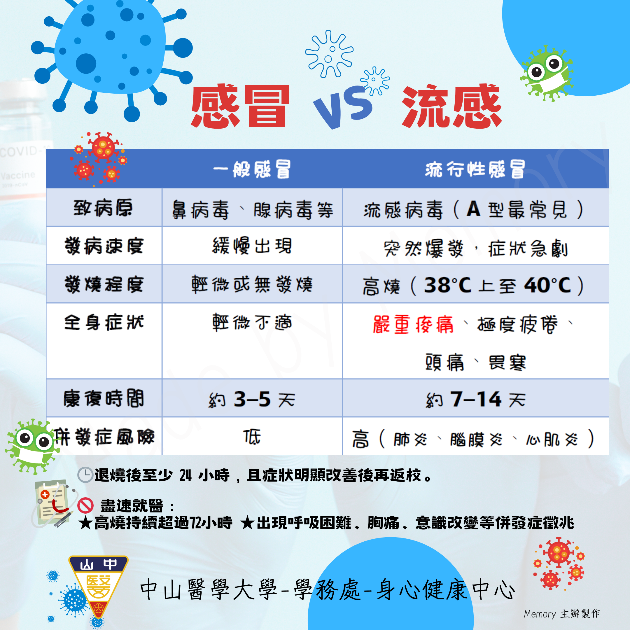👉詳細比較【流感 vs 感冒圖表】