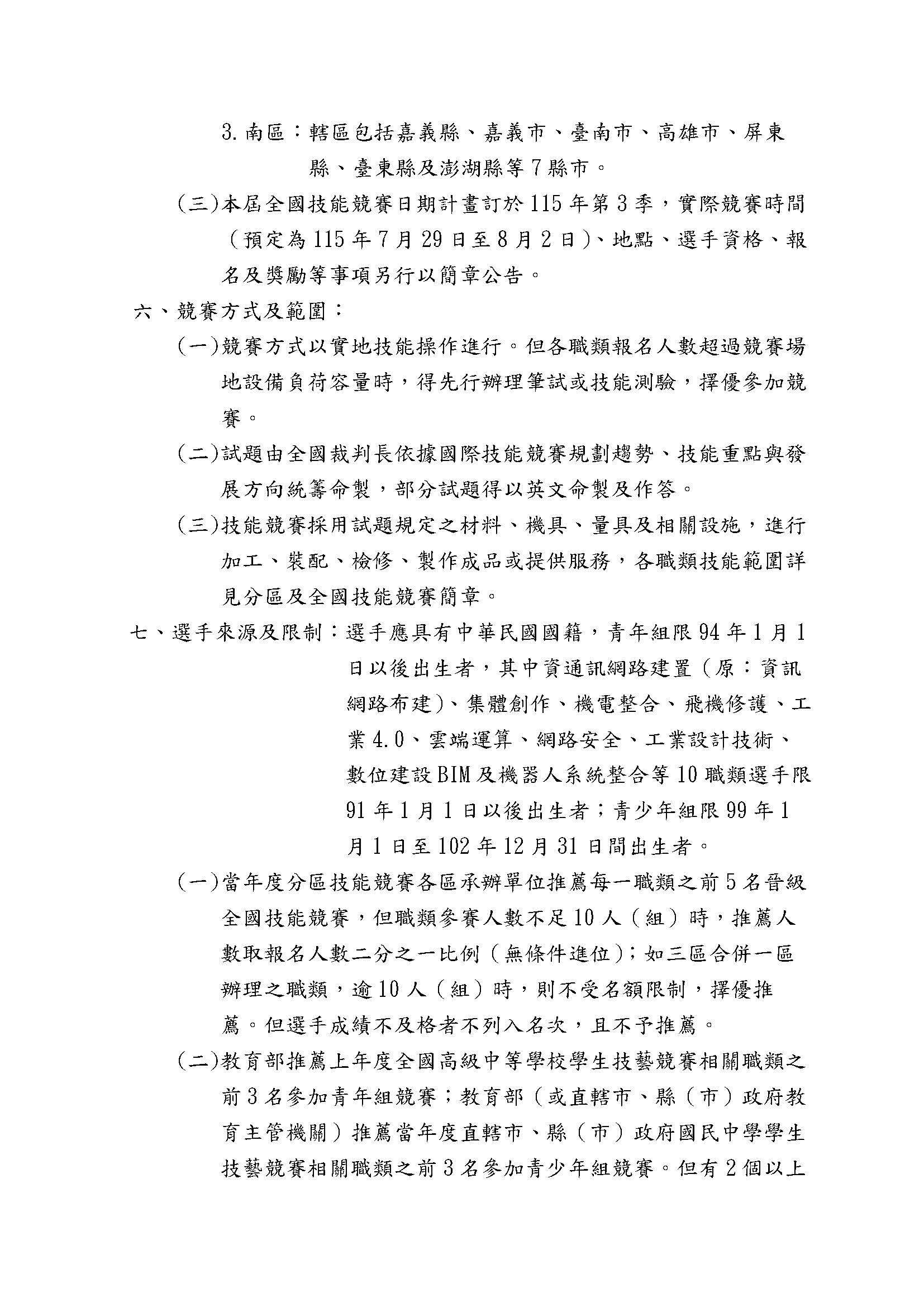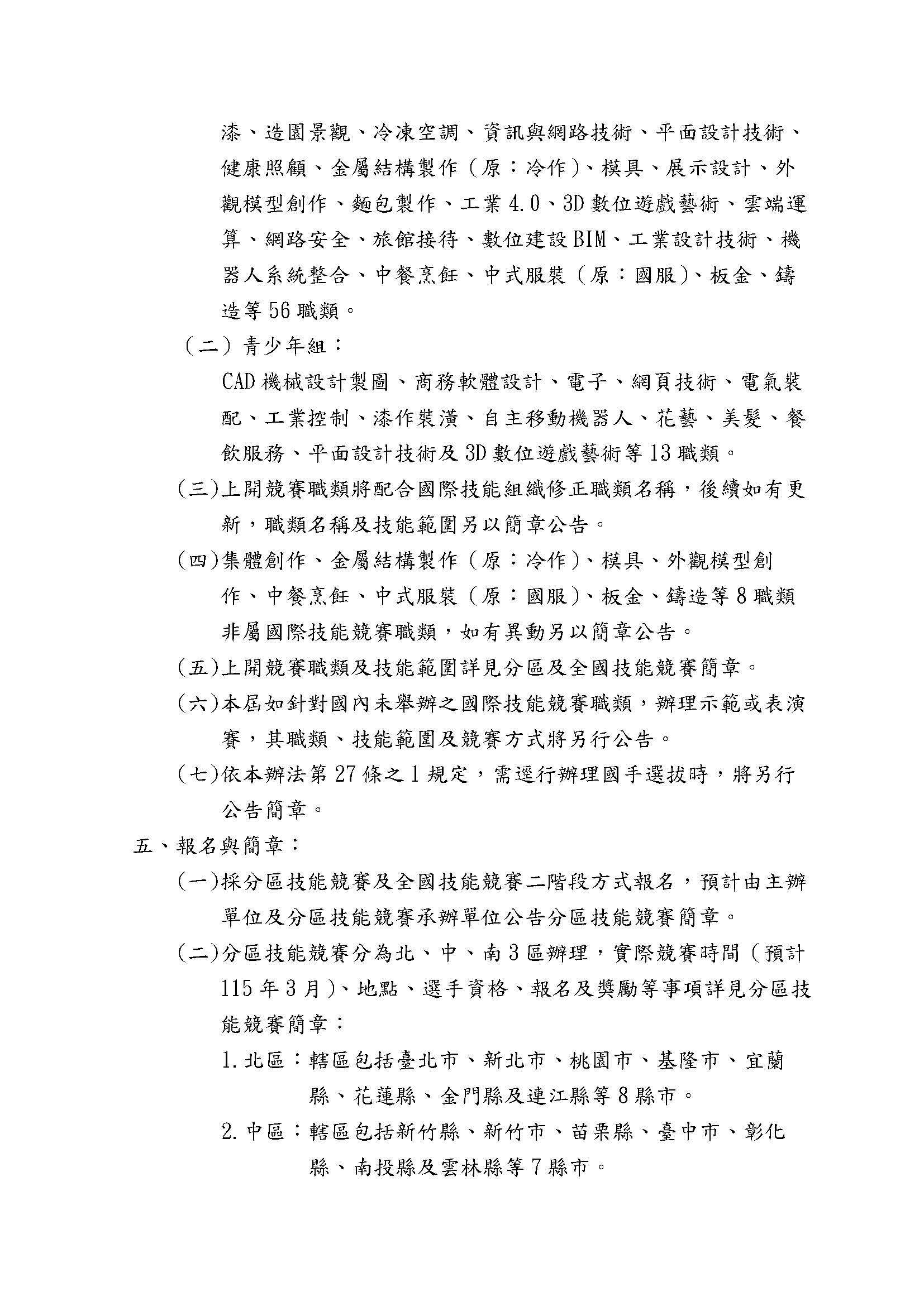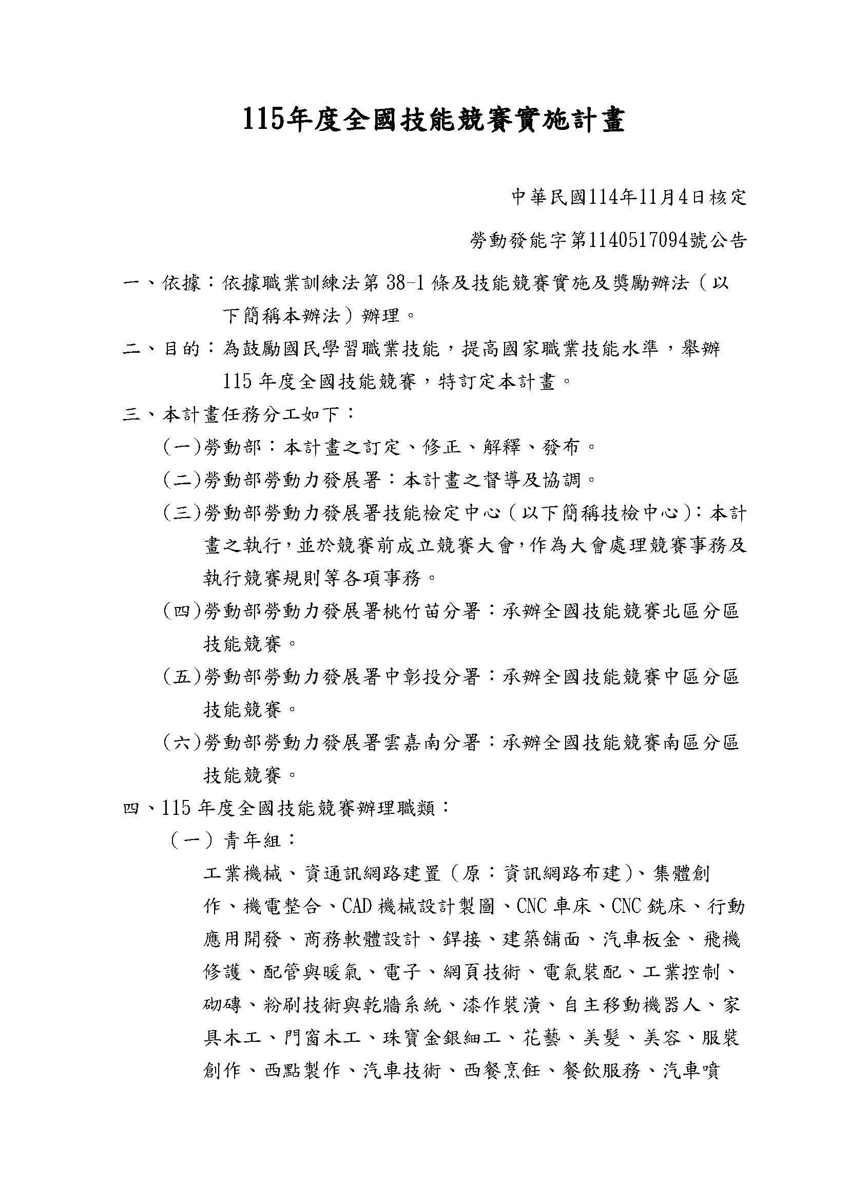 勞動部 - 「115年度全國技能競賽實施計畫」