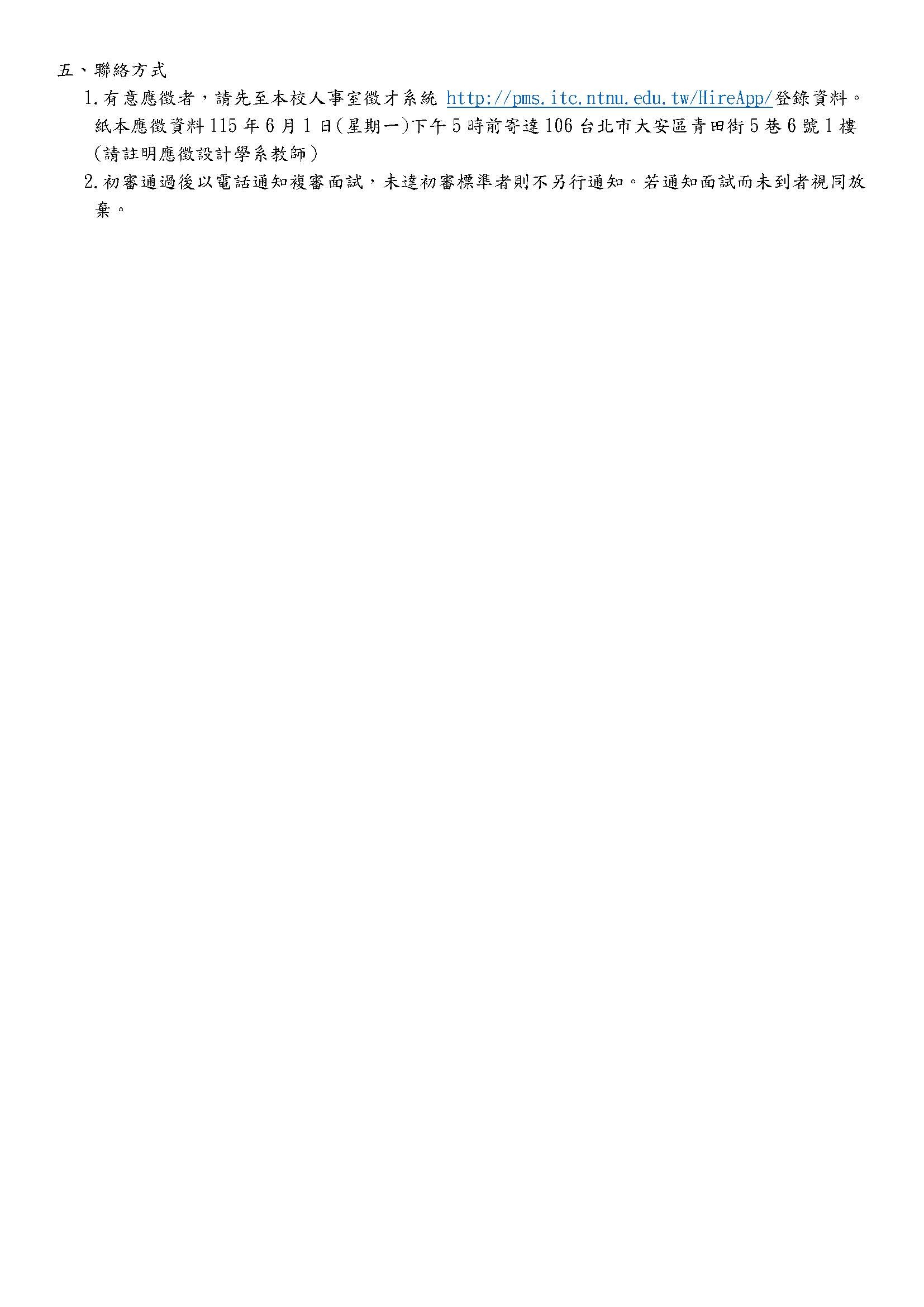 二、 應徵資料收件截止日:115年6月1日。