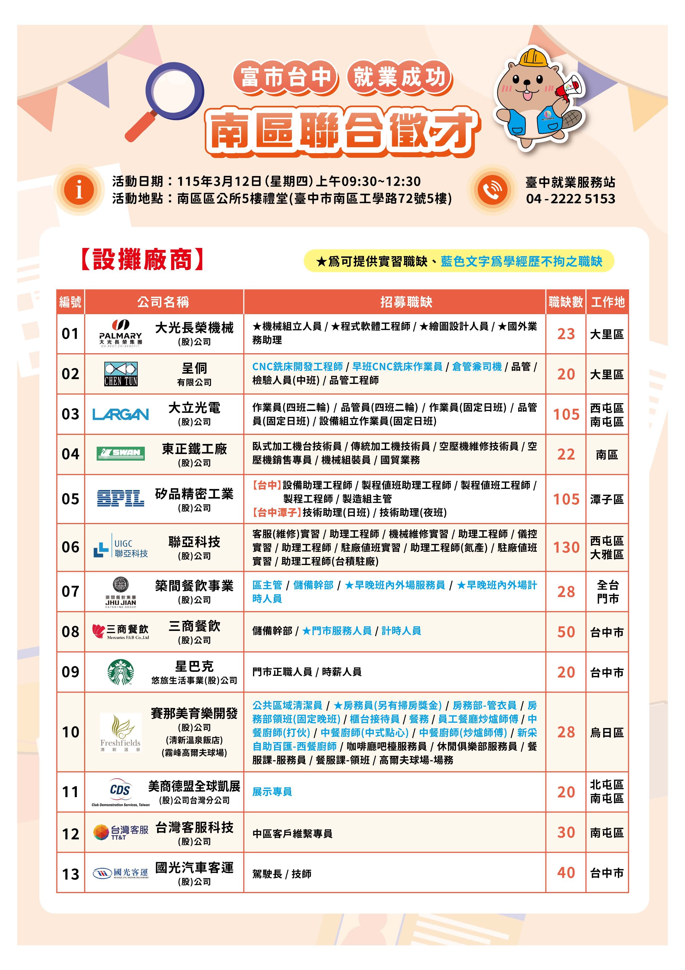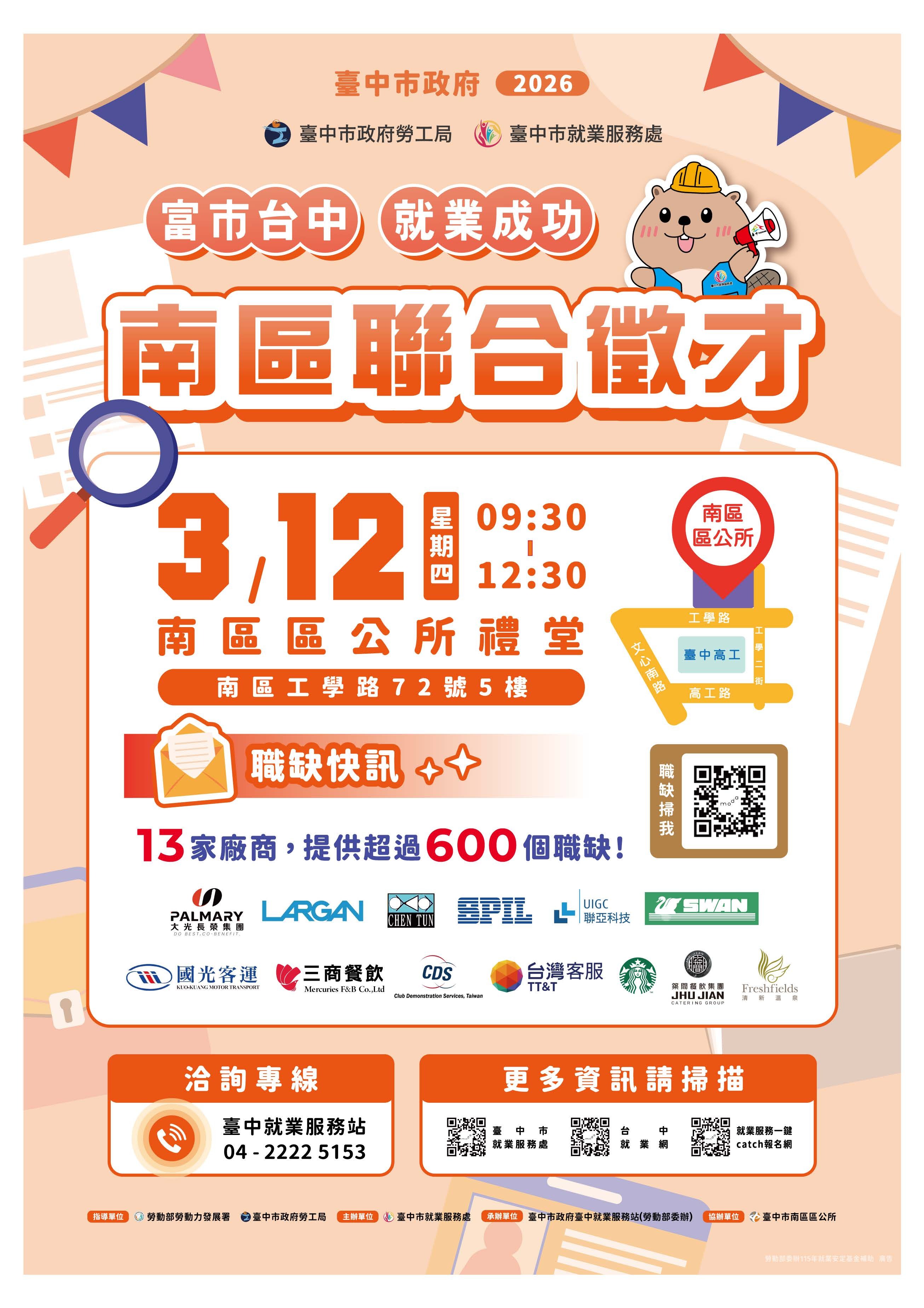 臺中市就業服務處 - 2026「富市台中 就業成功」南區聯合徵才