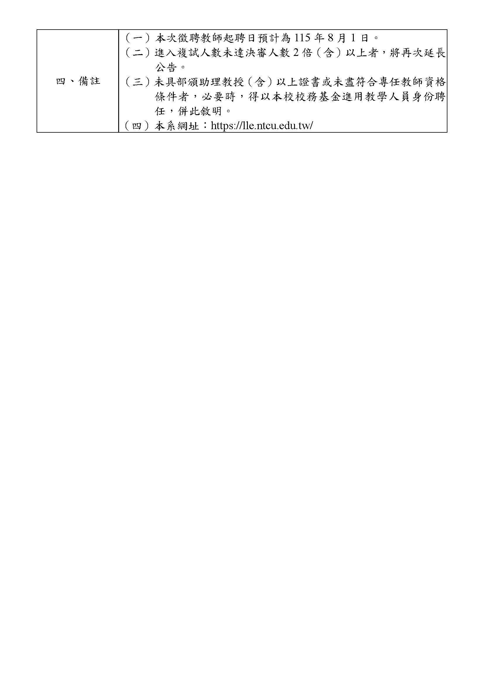 一、 本項徵才公告同時登載於系網站https://lle.ntcu.edu.tw/front/news/news.php?ID=11f2771d203546ba1550318b6e4c373b&Sn=1134,敬請參閱。