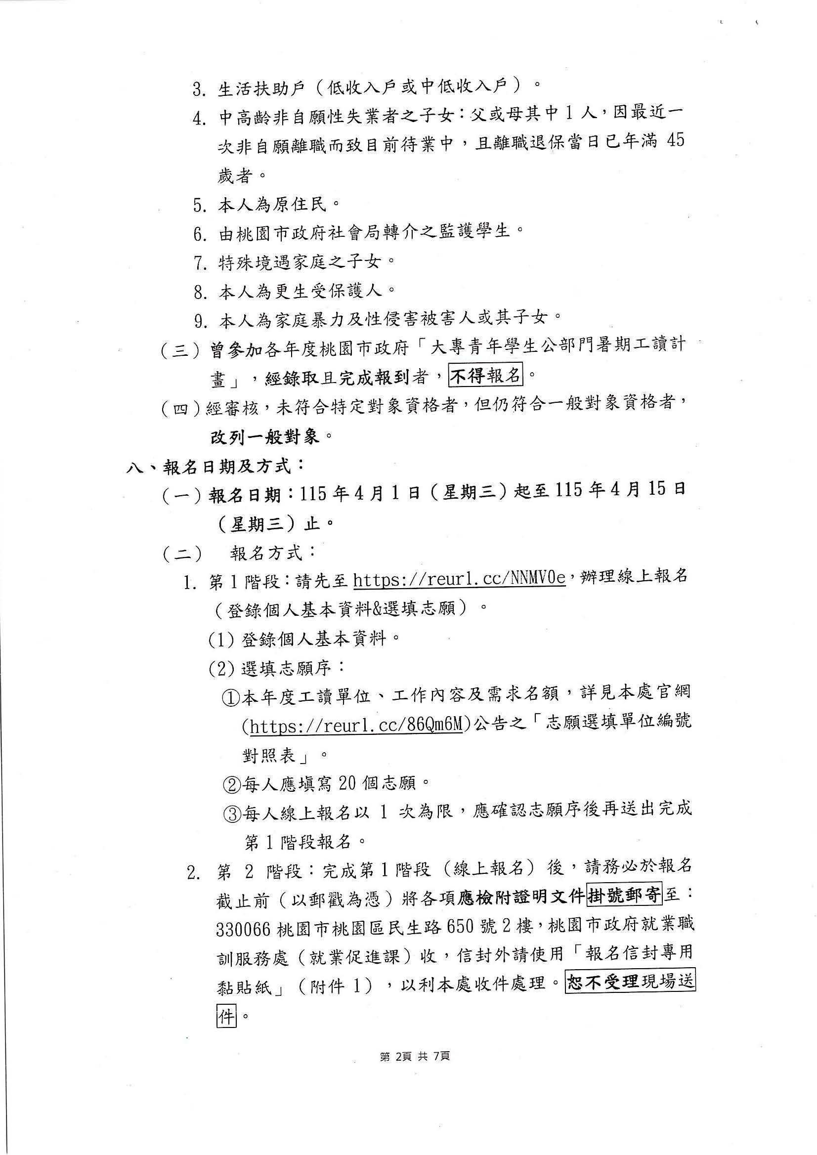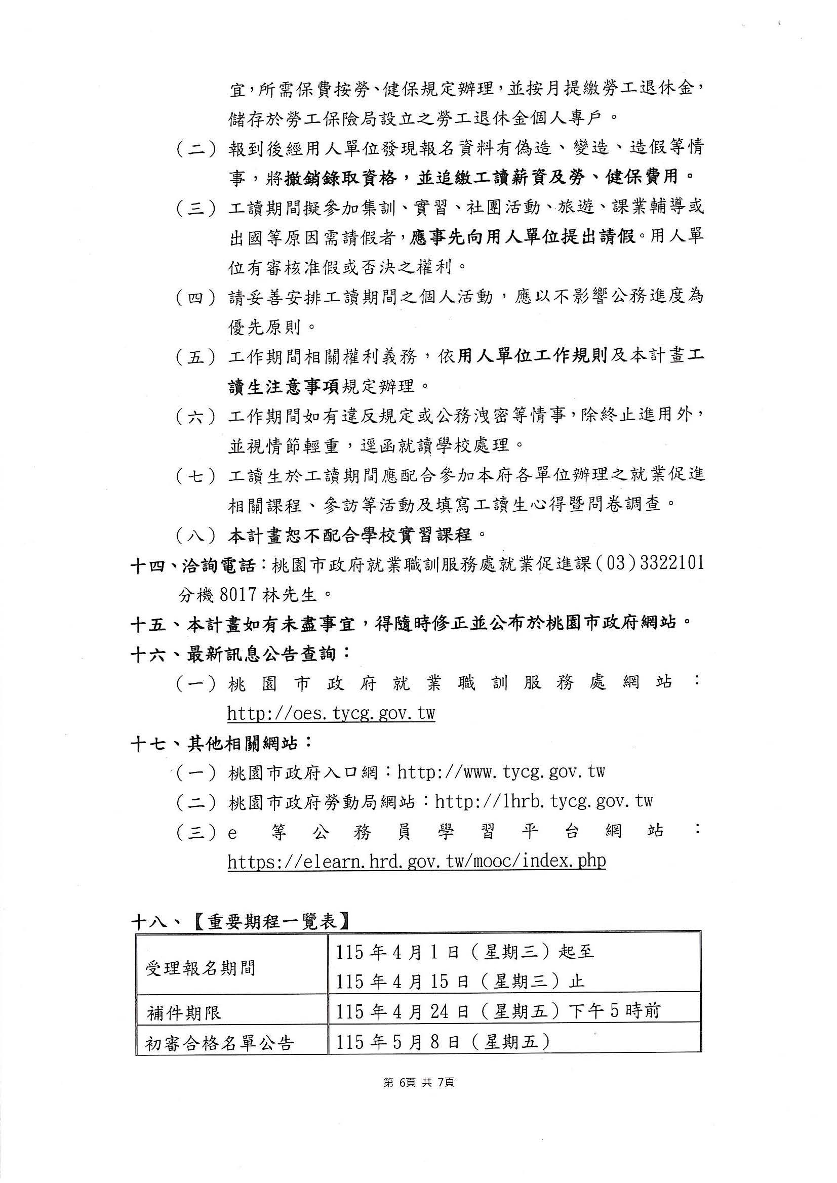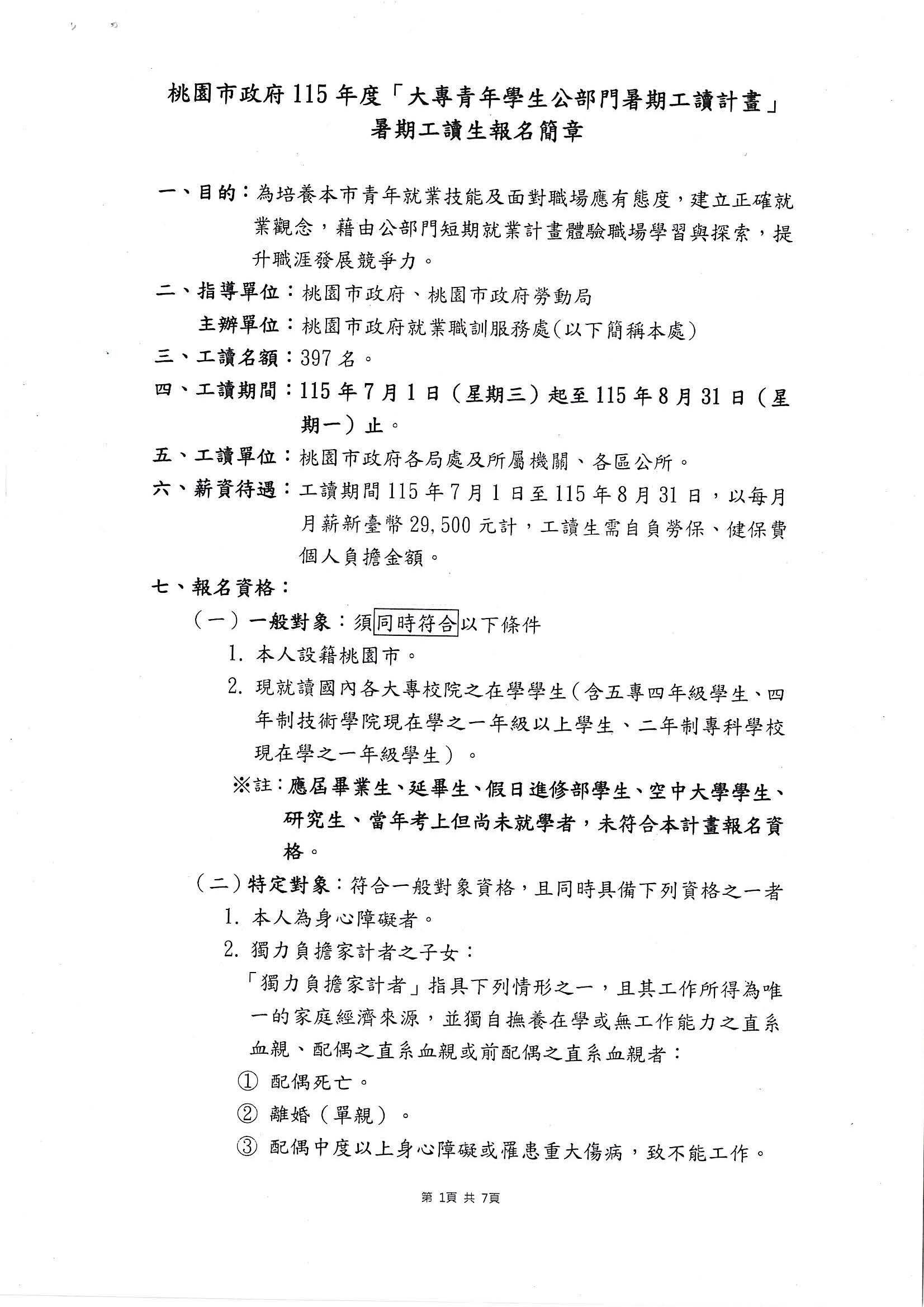 桃園市政府就業職訓服務處 - 「115年度大專青年學生公部門暑期工讀計畫」