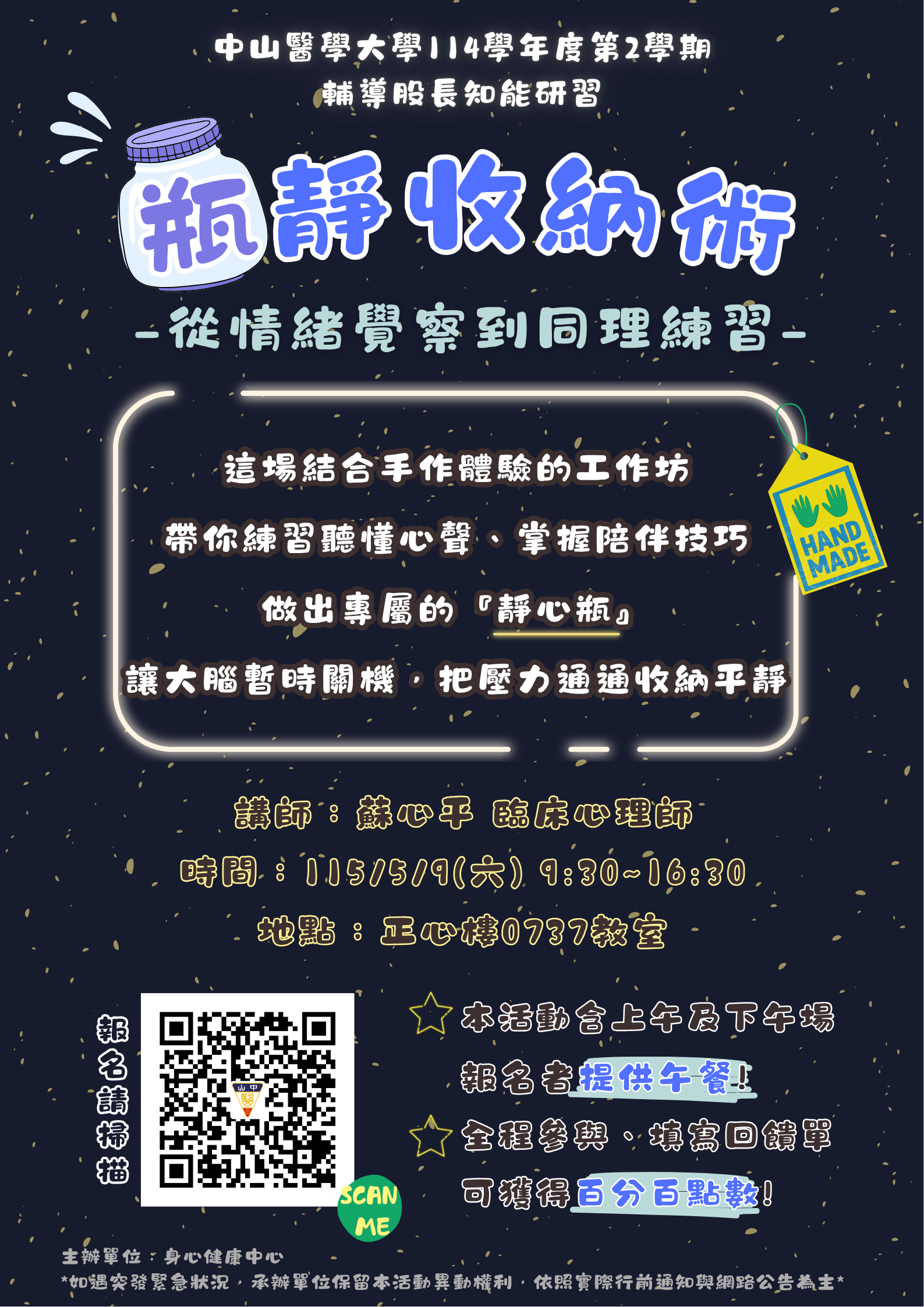 ~熱烈報名中~【114-2輔導股長知能研習】『瓶』靜收納術 :從情緒覺察到同理練習